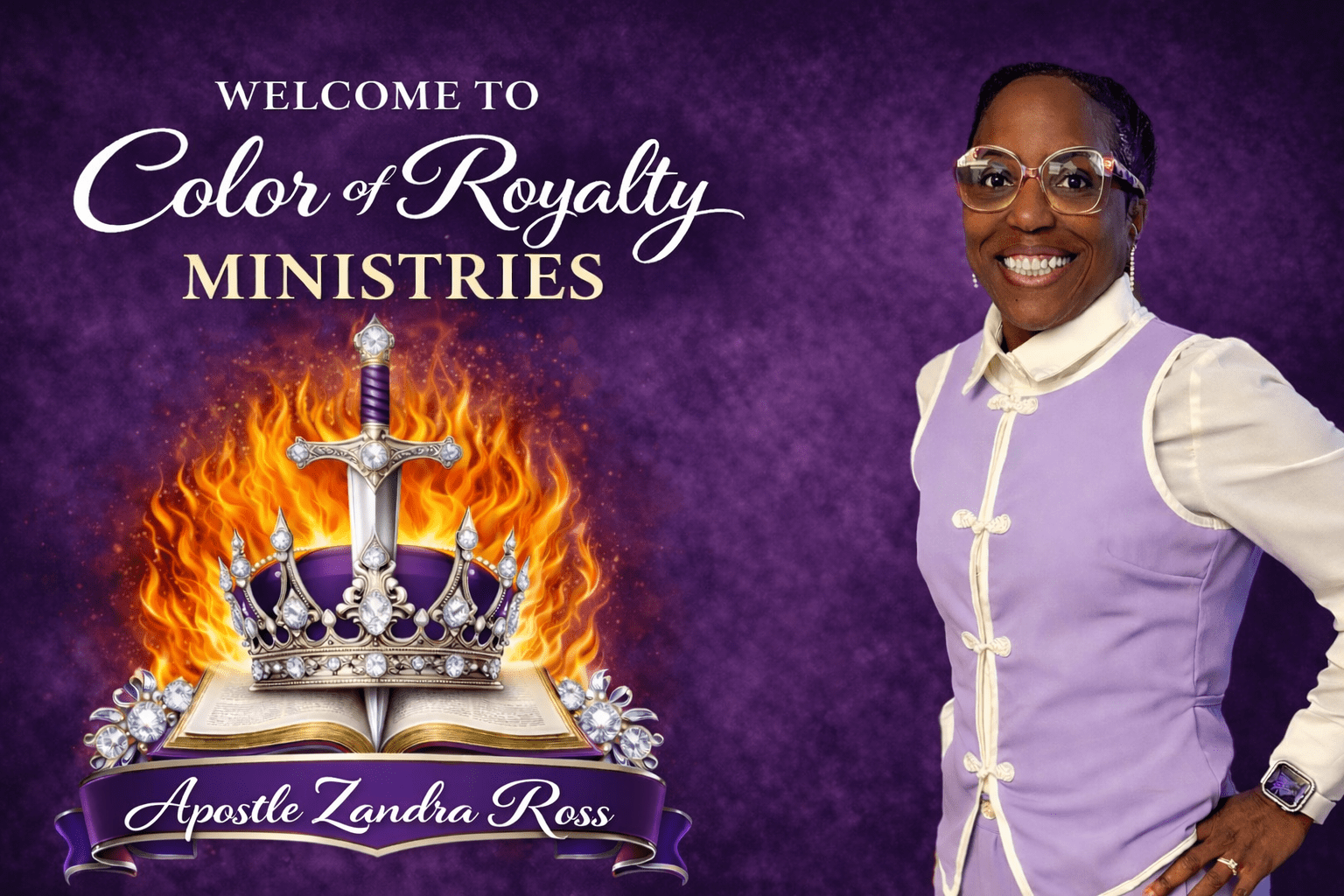Apostle Zandra Ross is the Founder of Color of Royalty Ministries, Inc., a mandate birthed through personal loss and transformed into divine purpose. What was once pain became power, and what was broken became a movement—calling sons and daughters into identity, wholeness, and an authentic relationship with Jesus Christ.